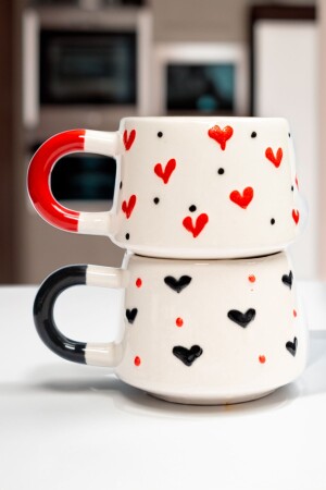 كوب صارخ يدوي من السيراميك - عيد الحب الخاص كوب قلب 2 قطع