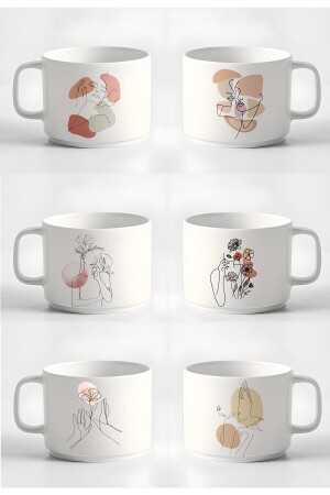 كوب قهوة تركية مزدوجة MNZ & Espresso كوب كوب خطي صغير للنساء 6 قطع Set Mug 180 ml DTKE61224
