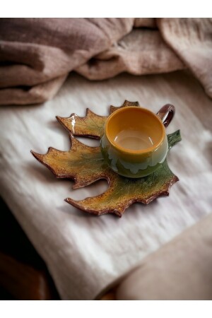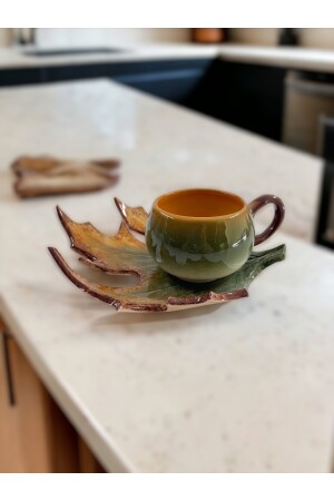 مجموعة كوب قهوة صارخ من ورقة MNZ-Çınar مصنوعة بالكامل يدوياً. كوب قهوة واحد من 110 مل 1 طبق سيتم إرساله كقطع 2.