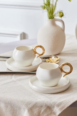 MNZ-Karaca Venüs Gold Coffee Cup Set لـ 2 أشخاص 135 مل المواد: العظام الجديدة 8 كيراط من الذهب يستخدم في مجموعة كوب القهوة.