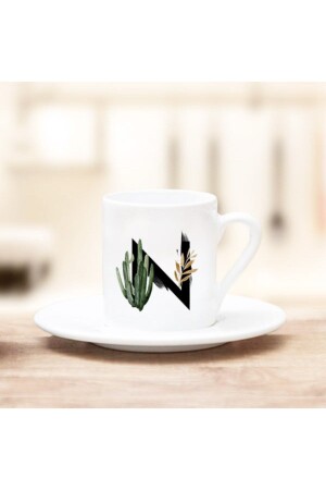 كوب قهوة تصميم ورقة مزخرفة من MNZ مع حرف N مكتوب