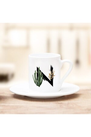 كوب قهوة من تصميم ورقة مزخرفة من MNZ مع حرف N مكتوب AZ-1516