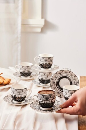 MNZ-Karaca Aysel Coffee Cup Set للست أشخاص 85 مل المواد: مجموعة عظام جديدة محتويات: 6 كوبات قهوة (85 مل) 6 كوبات صوص