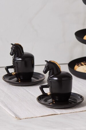 MNZ-Karaca Black Horse Coffee Cup Set لشخصين 90 مل حجم: 90 مل مواد: البورتسلين