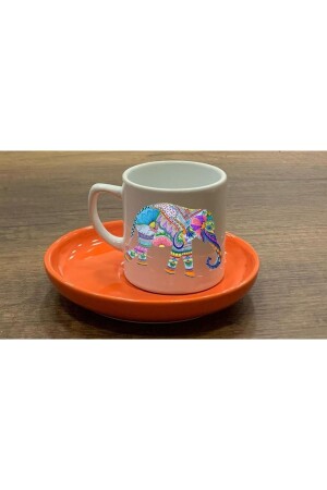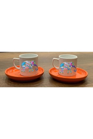 مجموعة من كوبين للقهوة التركية مع صورة الفيل البرتقالي المواد: السيراميك (كوب وصلصة البرتقالي) اللون: أبيض الشكل: بعدة ح