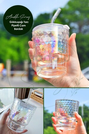 كوب قوس قزح بوروسيليكات مقاوم للحرارة مع كوب عرض القهوة الصوف - 1 قطعة كوب عرض القهوة الصوف - 1 قطعة من 400 مل 1 قطعة من
