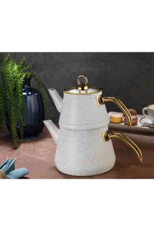 Nv10055 Porselen Demlikli Beyaz Emaye Çaydanlık Takımı