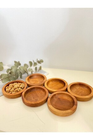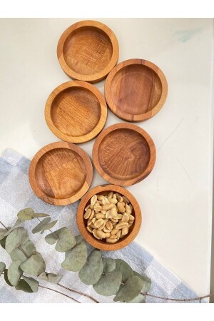 1'okay - Ahşap 2'li Yuvarlak Servis Tabağı, Sunumluk, Kahvaltı Tabağı, Ahşap Tabak (CEVİZ AĞACI) OKAY- TS003