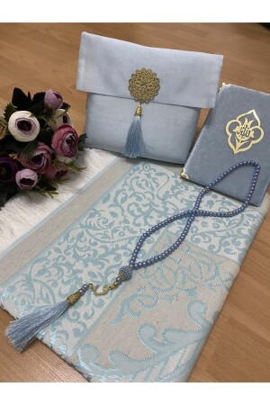 Oğlumun İbadet Seti Namaz ve Kuran Öğreniyorum Çocuk Seccade Seti Mavi