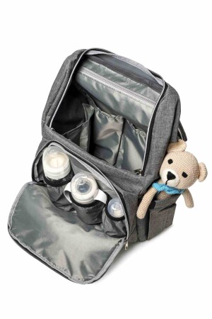 Biberon Termoslu Sıvı Geçirmez Puset Askı Aparatlı Siyah Füme Çizgili Anne Bebek Bakım Sırt Çantası