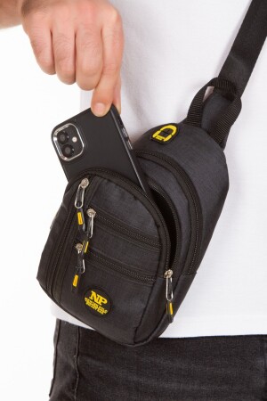 Unisex Siyah Keten Kumaş Telefon Bölmeli Çapraz Askılı Omuz Ve Bel Çantası Günlük Çanta