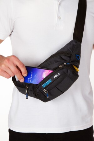 Unisex Siyah Keten Kumaş Telefon Bölmeli Çapraz Askılı Omuz Ve Bel Çantası Günlük Çanta