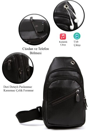 %100 Hakiki Deri Çapraz Askılı Kulaklık Çıkışlı Göğüs Ve Omuz Çantası Adl-56478