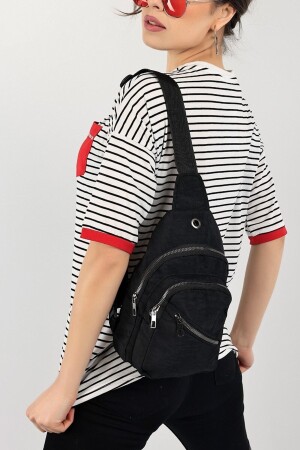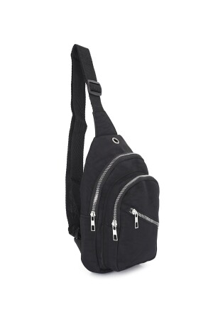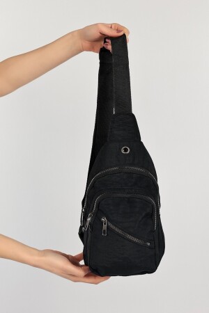 Unisex Siyah Keten Kumaş Telefon Bölmeli Çapraz Askılı Omuz Ve Bel Çantası Günlük Çanta