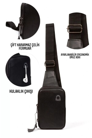 %100 Hakiki Deri Çapraz Askılı Kulaklık Çıkışlı Göğüs Ve Omuz Çantası Adl-56478