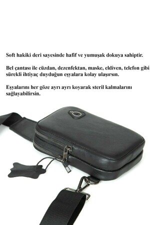 حقيبة الصدر الأسود للرجال مع مكعب سماعات الرأس الأبعاد: 18x12x4.5 سم. مصنوعة من جلد حقيقي. يتكون من 2 أقسام منفصلة من نفس الحجم