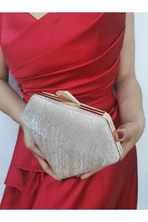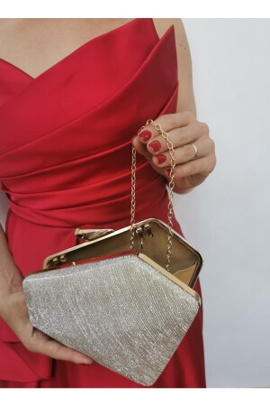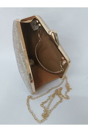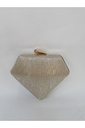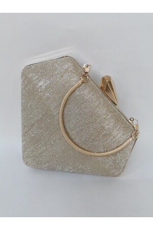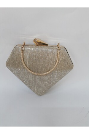 Simli Altın Renk Taşlı Işlemeli Kadın Abiye Portföy Clutch Çanta Indirimli