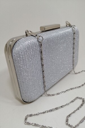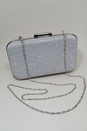 حقيبة ملابس المساء ذات اللون الفضي MNZ هي 20 سم في العرض و 12 سم في الطول و 5 سم في العميقة. يمكن وضع سلسلة حقيبة ملابس المساء المزدوجة