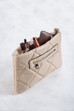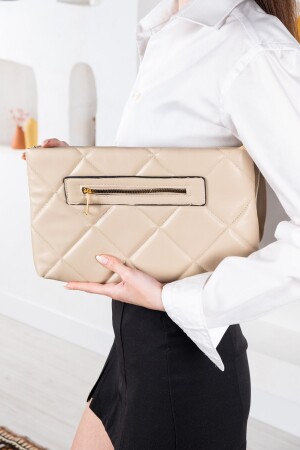 Kadın Trend Bej Deri Clutch Portföy Çanta