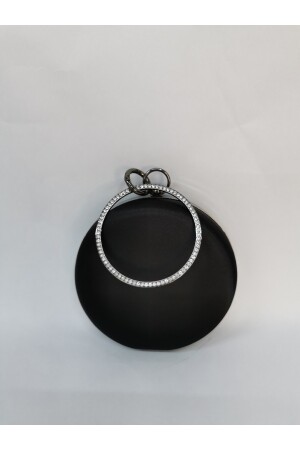 Kadın Yuvarlak Gümüş Taşlı Bilezik Aksesuarlı Abiye Clutch Portföy Çantası
