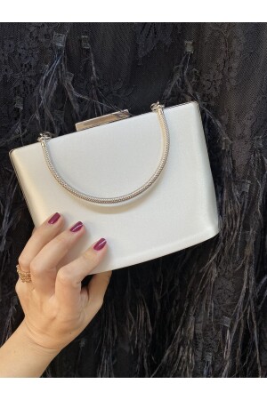 Kadın Yuvarlak Gümüş Taşlı Bilezik Aksesuarlı Abiye Clutch Portföy Çantası