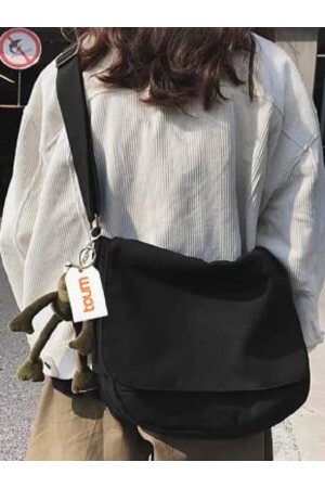 Kadın Siyah Çapraz Ayarlı Askılı Klinkır Kumaş Postacı Omuz Çantası