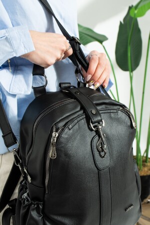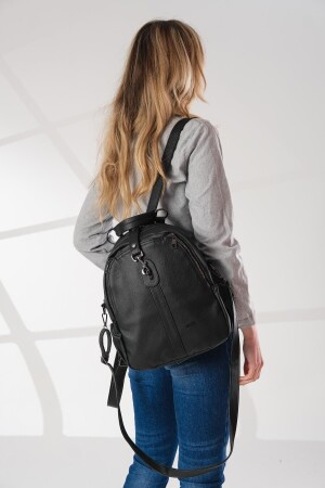 Hakiki Deri Kadın Sırt Ve Omuz Çantası - Maymun Model Çok Bölmeli - Koyu Ala