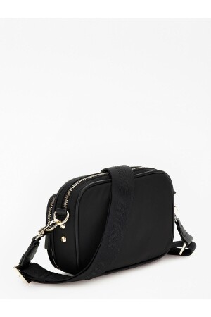 Kadın Siyah Çapraz Ayarlı Askılı Klinkır Kumaş Postacı Omuz Çantası