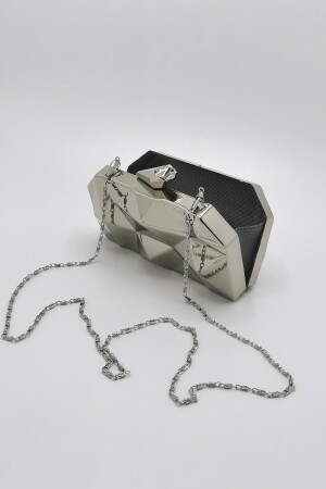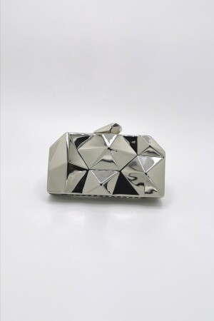 Kadın Yuvarlak Gümüş Taşlı Bilezik Aksesuarlı Abiye Clutch Portföy Çantası