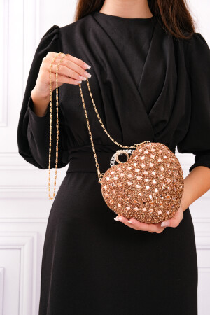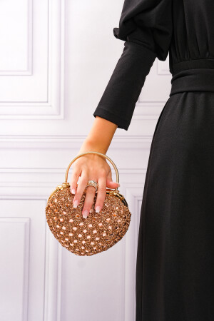 Simli Altın Renk Taşlı Işlemeli Kadın Abiye Portföy Clutch Çanta Indirimli