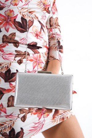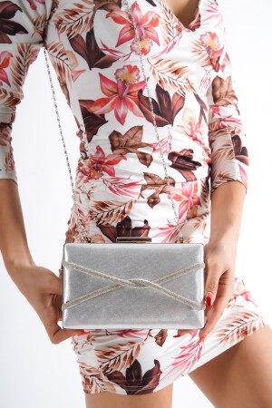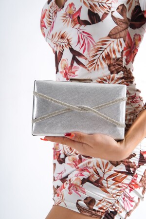Kadın Yuvarlak Gümüş Taşlı Bilezik Aksesuarlı Abiye Clutch Portföy Çantası