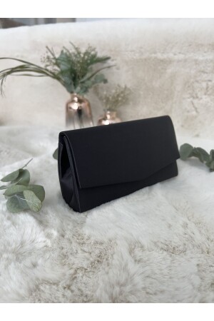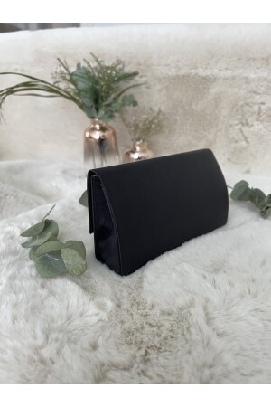 Kadın Saten Siyah Abiye Clutch Portföy Zincir Askılı El Düğün Nişan Gece Omuz Çantası