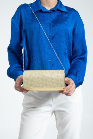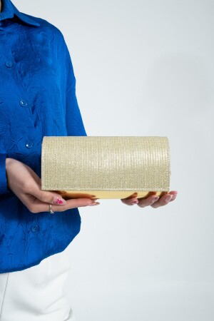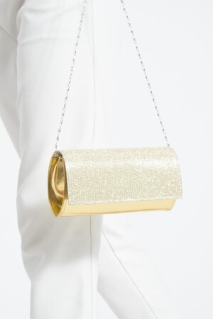 Simli Altın Renk Taşlı Işlemeli Kadın Abiye Portföy Clutch Çanta Indirimli
