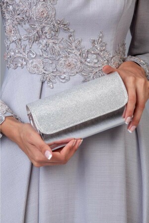 Kadın Yuvarlak Gümüş Taşlı Bilezik Aksesuarlı Abiye Clutch Portföy Çantası