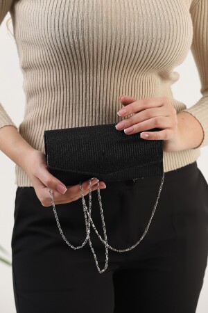 Siyah Kadın Taşlı Ve Sade Özel Zincir Ve Kolçaklı Abiye Çanta Bg1175-310-0011