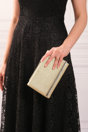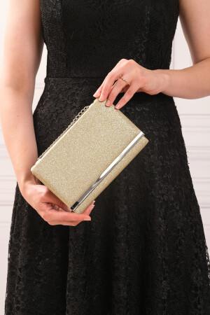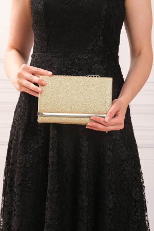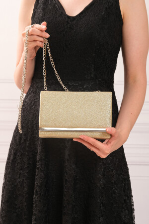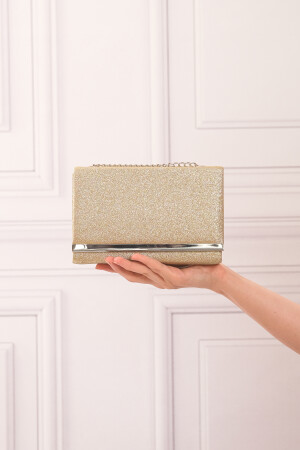 Simli Altın Renk Taşlı Işlemeli Kadın Abiye Portföy Clutch Çanta Indirimli