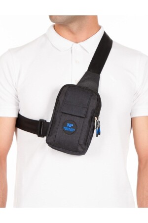 ثياب كتان أسود من نوع MNZ-Unisex الصفحة الوسطى الشريط الكتف والحزام مع قسم الهاتف معلومات الحقيبة اليومية حجمها: ارتفاع 18 سم. عرض