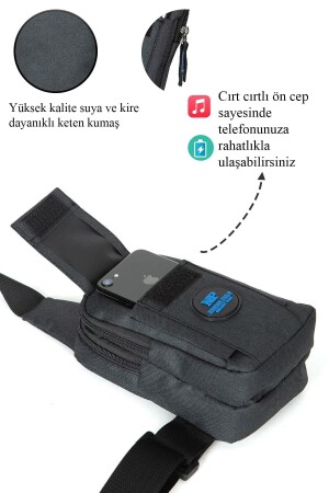 Unisex Siyah Keten Kumaş Telefon Bölmeli Çapraz Askılı Omuz Ve Bel Çantası Günlük Çanta