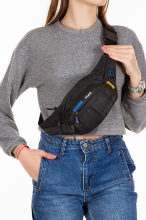 Unisex Siyah Keten Kumaş Telefon Bölmeli Çapraz Askılı Omuz Ve Bel Çantası Günlük Çanta