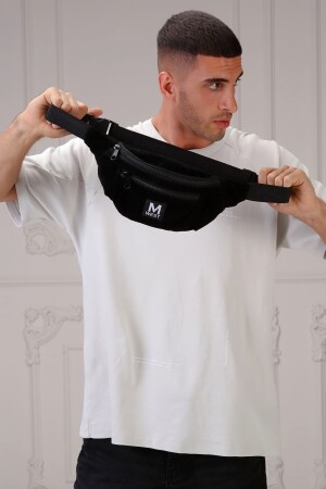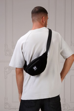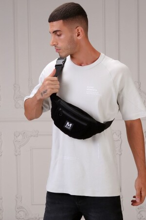 Unisex Siyah Keten Kumaş Telefon Bölmeli Çapraz Askılı Omuz Ve Bel Çantası Günlük Çanta