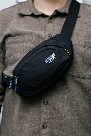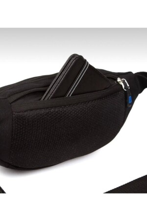 Unisex Siyah Keten Kumaş Telefon Bölmeli Çapraz Askılı Omuz Ve Bel Çantası Günlük Çanta