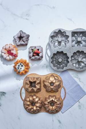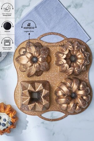 تميزات كيك كيك مكسيك 4 قطعة ذهبية من الذهب في حين أنها توفر استدامة عالية بفضل جسمها الصلب الألومنيومي ، فإنها توزع الحرارة بشكل
