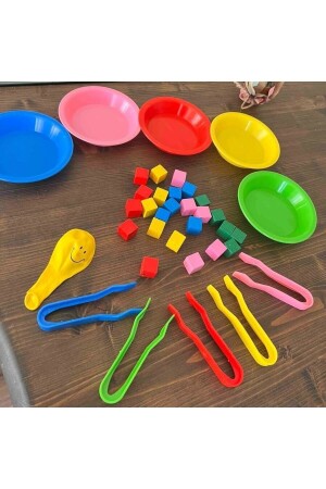 تمنح الطالب اللعبة ومركزات التعلم من خلال اللونات الخشبية. يتم وضع الكوبات الصفراء واحدة تلو الأخرى في الحاويات. يتم إكمال النشاط