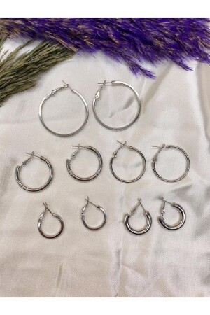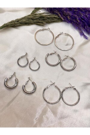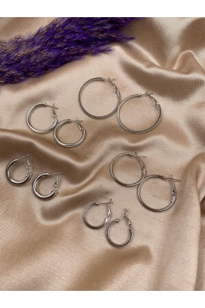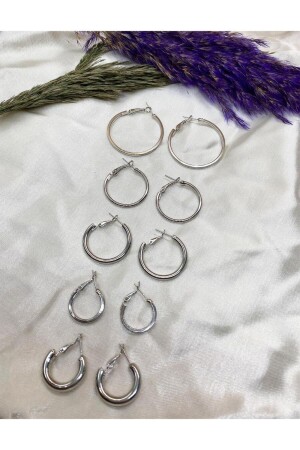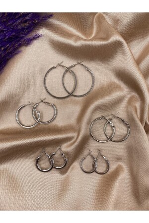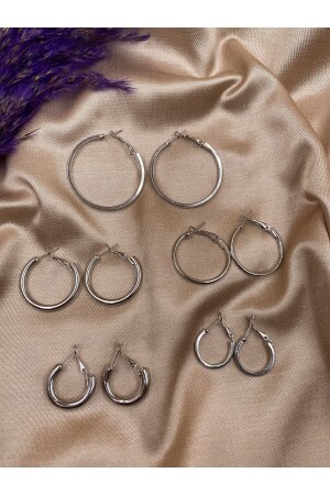 3 Çift Büyük Boy Halka Gümüş Renk Küpe