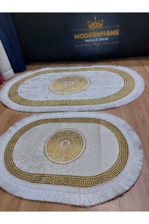 Lazer Kesim Peluş 2'li Oval Siyah Banyo Paspas Takımı
