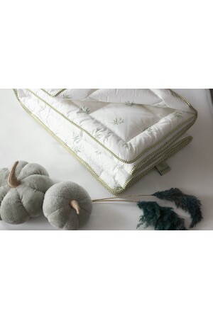 مقاس: 195x215 سم (مضاعف) 80 خيط 100٪ من نسيج القطن. لون النسيج أبيض ، لون الأنابيب أخضر و هناك طباعة من البام
