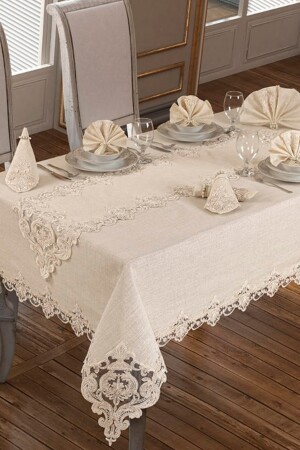Lüx Colber Masa Örtüsü Seti 12 Kişilik Colber (krem)