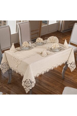 12 Kişilik Masa Örtüsü Takımı- Masa Seti 12 Kişilik 26 Parça 160x220cm Yarım Dantel