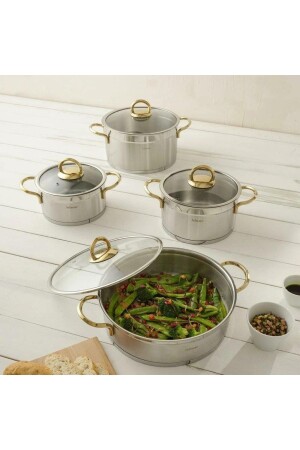 Bio Granit 7 Prç Istiridye Fildişi & Gold Kulp Tencere Ve Tava Seti EVTGR7PRÇEZMFİLDİŞİ