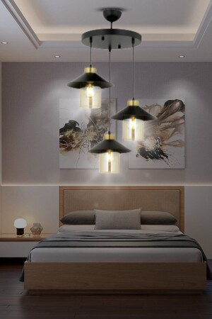 3'lü Siyah Modern Sarkıt Led Avize Beyaz Işık Salon Mutfak Oda Hol Ledli Avize